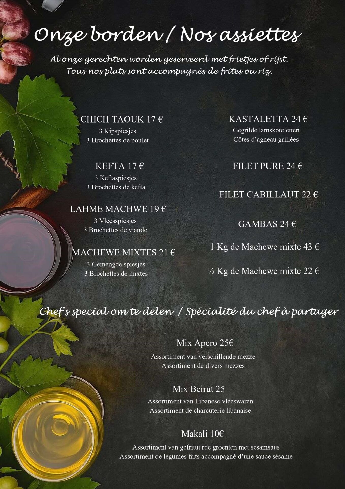 Notre carte propose une variété de plats savoureux et uniques, inspirés des recettes traditionnelles du Liban.